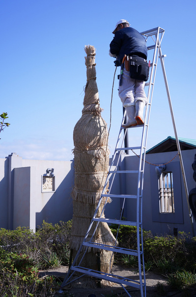 先日、バリ風の屋根の草の補充、修繕作業を作業員の方が